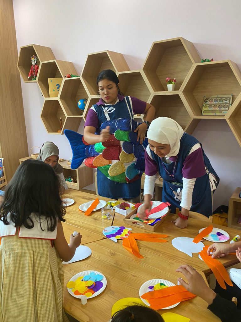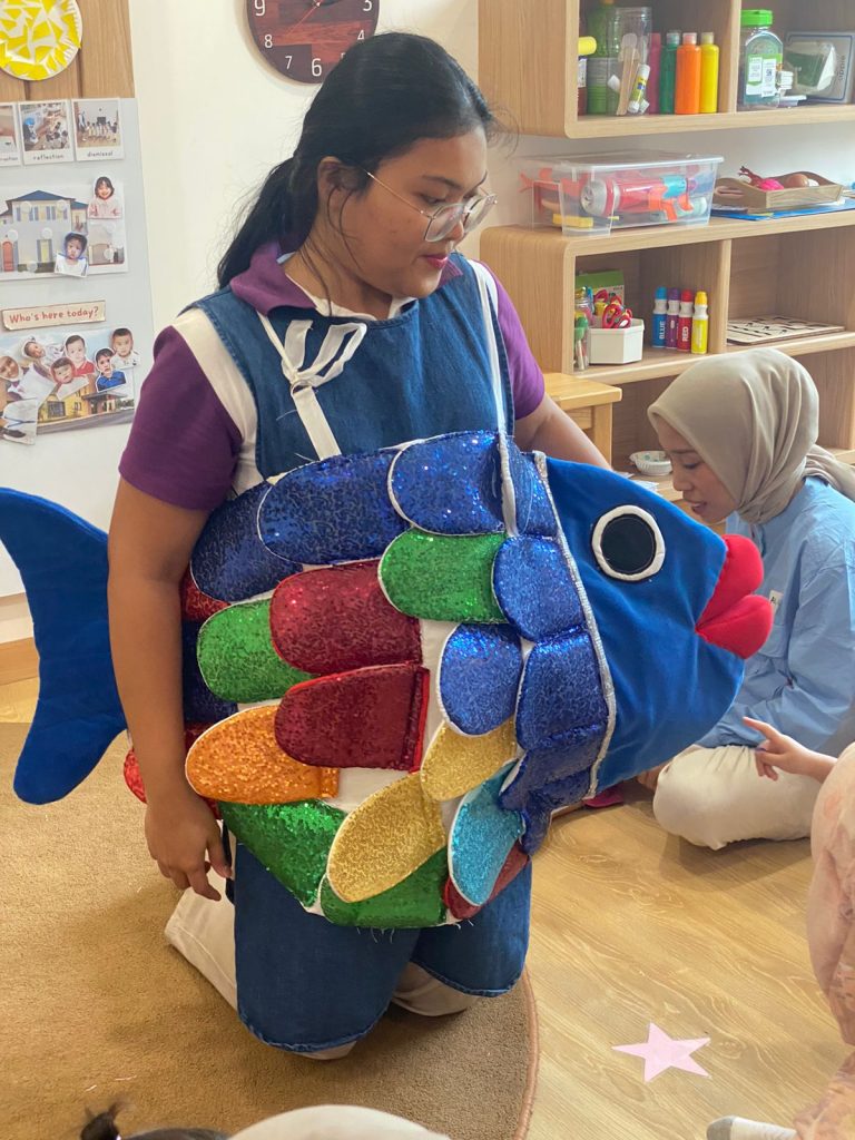 Created on 1 Oct 2025 (SC) Our Creative Exploration this week was filled with joy and imagination! 🐠✨ The children gathered for circle time, enjoyed music and movement, listened to the magical musical storytelling of The Rainbow Fish, and created their very own sparkling rainbow fish in art and craft.