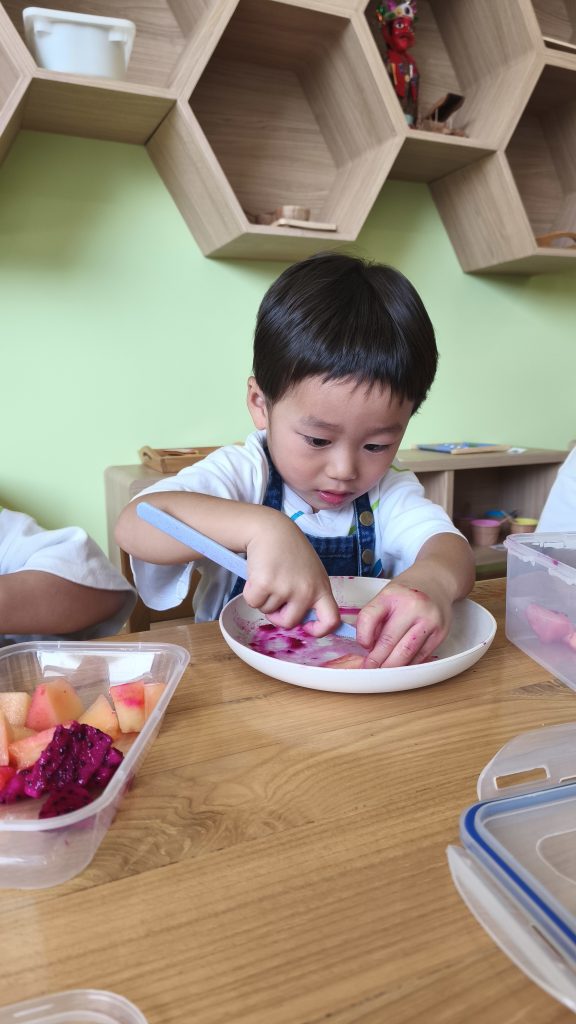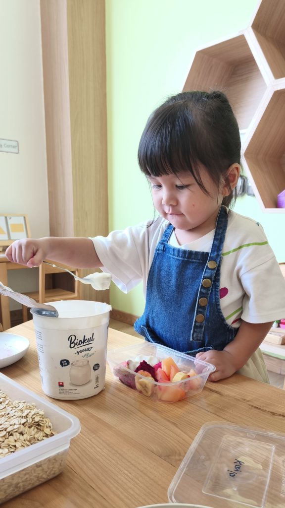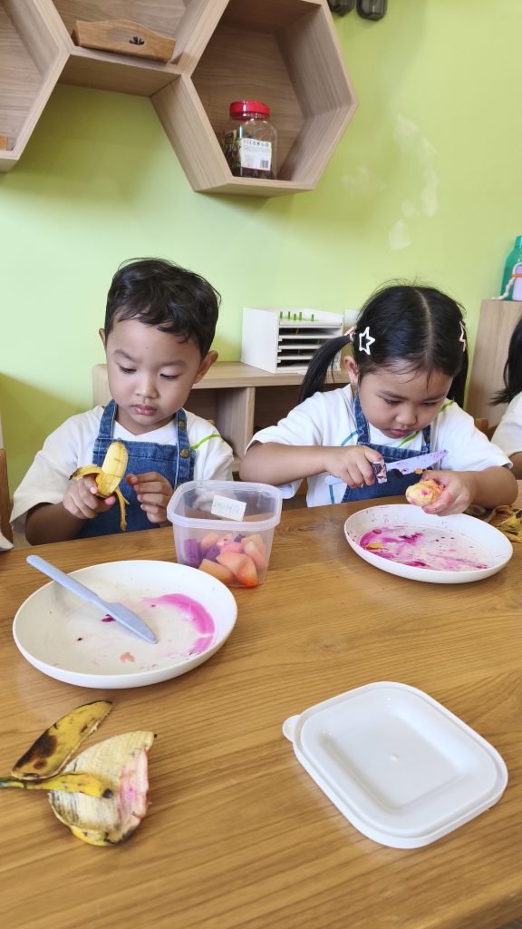Our little chefs rolled up their sleeves to make their very own fruit parfaits, layering sweet bananas, juicy dragon fruits, and refreshing cantaloupe with creamy yogurt and oats. Through every peel, slice, and mix, they learned valuable life skills while discovering the joy of healthy eating.
