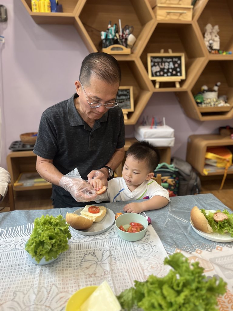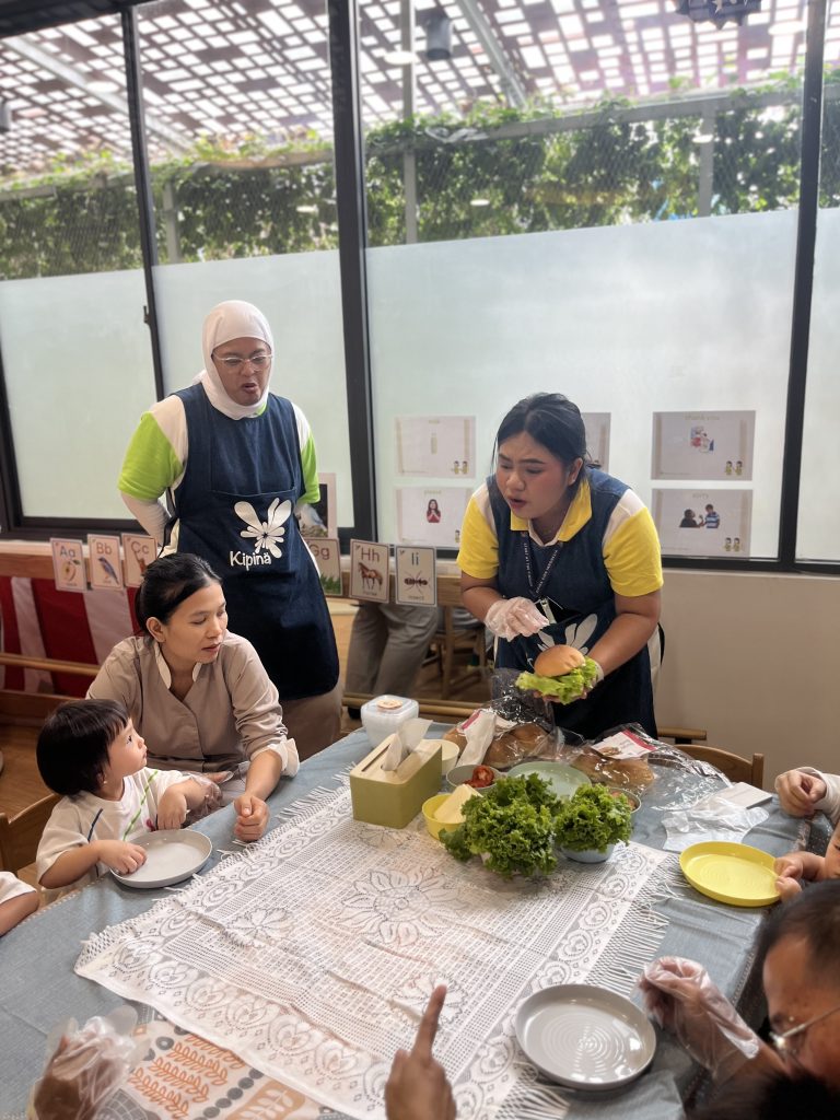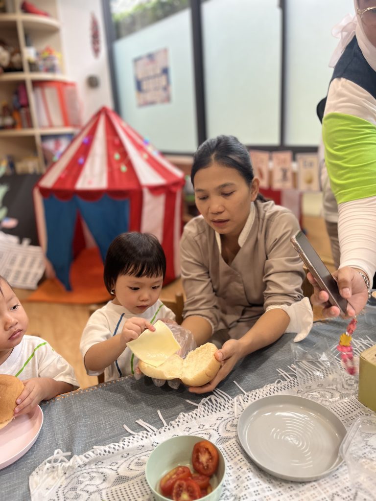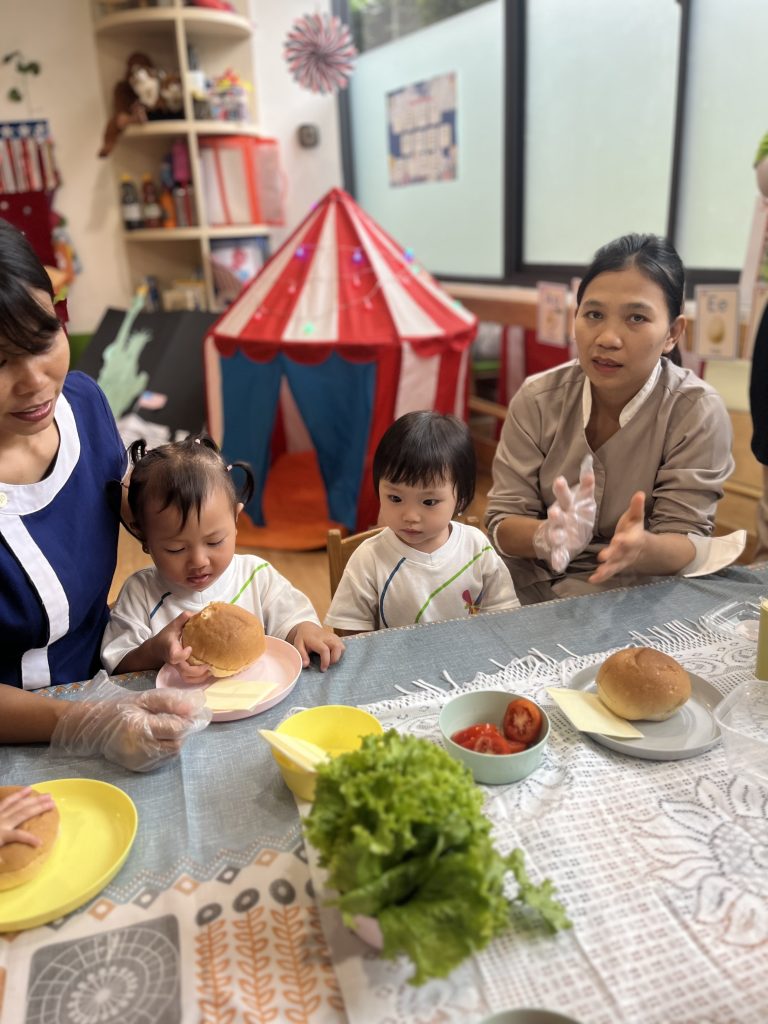 They made their own mini hamburgers, exploring textures, colors, and flavors while learning through play. 👶
