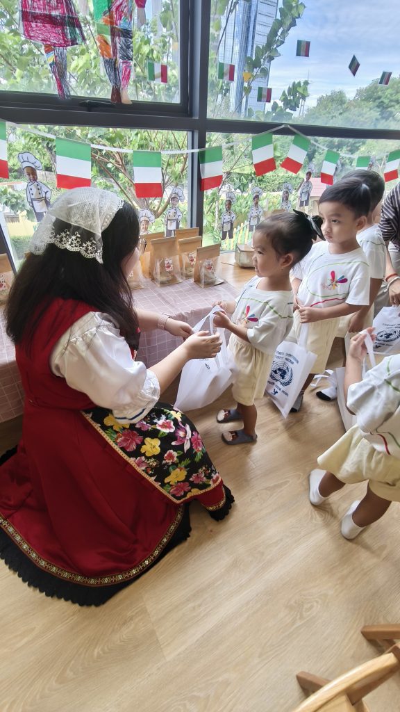 They visit classrooms beautifully decorated with ornaments from many countries, taste delicious foods, and learn a bit about each culture along the way. 🍣🥐🌮
