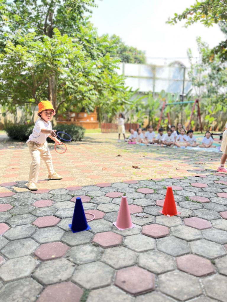 Look at our little learners in action — running, tossing rings, and cheering for their friends! 🧡