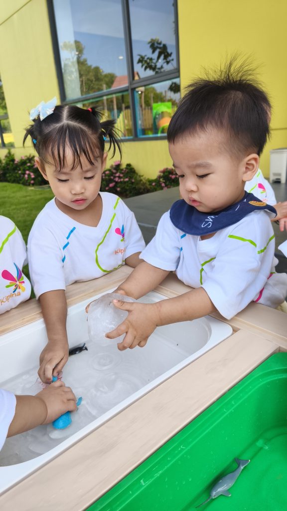 Children are introduced to the winter season by exploring ice and learning about animals that live in cold places. 🐧🐻❄️ A fun, hands-on way to discover the wonders of the chilly world! 🌨️✨