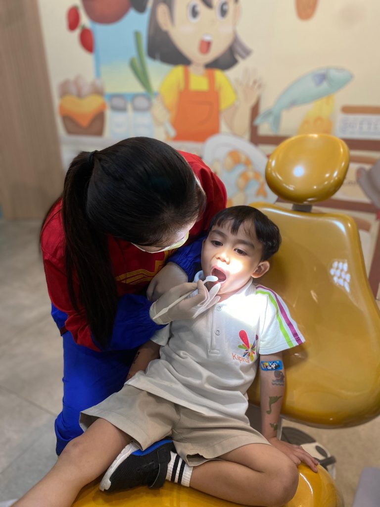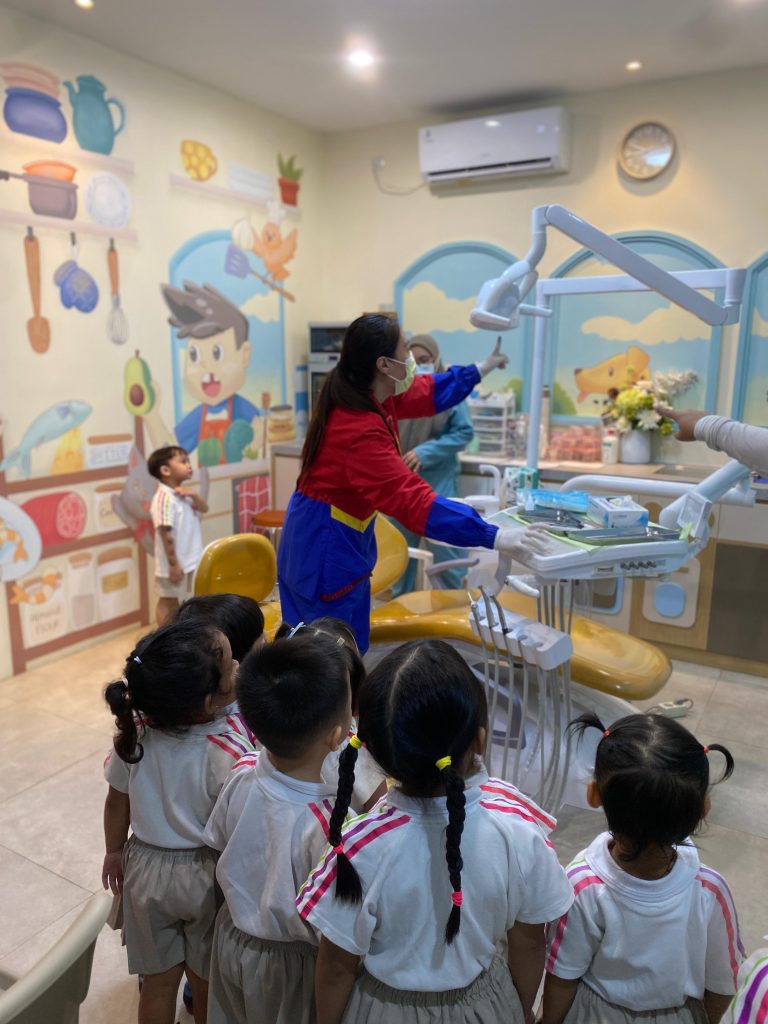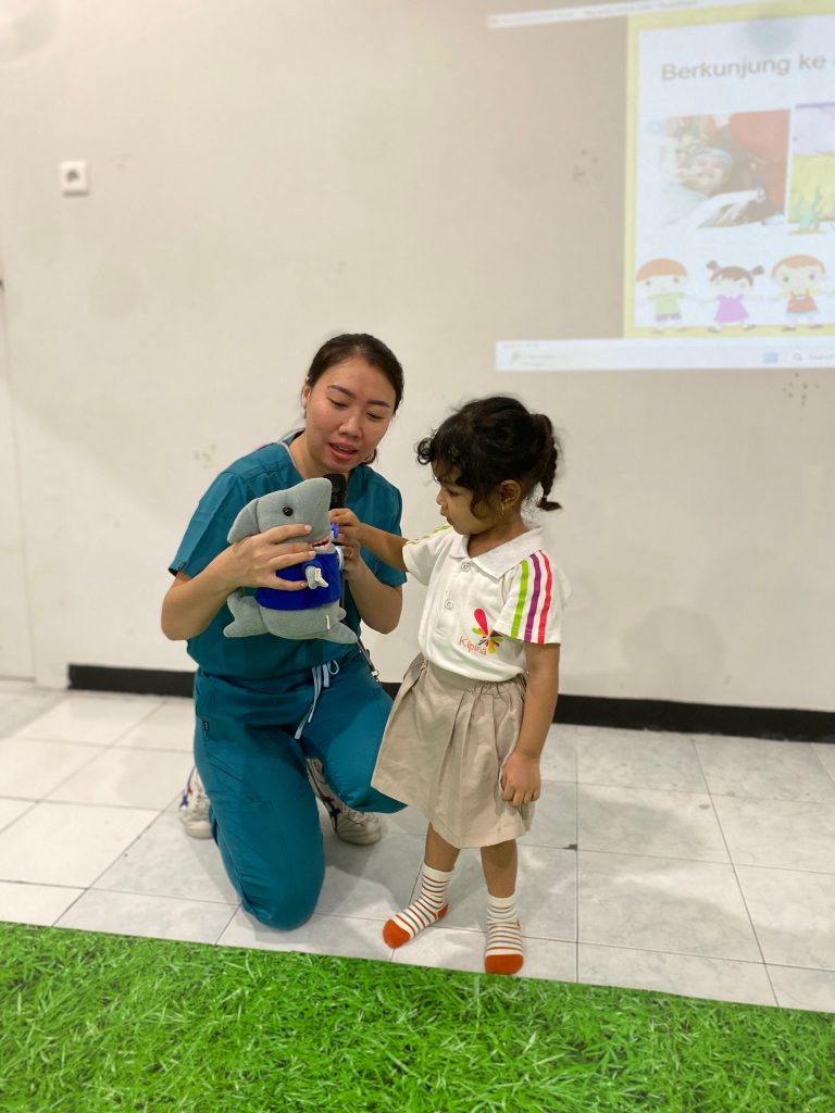 The Nursery students of Kipina Kids Surabaya enjoyed an exciting and educational field trip to a pediatric dental clinic, where they learned all about oral health in a fun and engaging way. For many of the children, this was their first time visiting a dentist outside of home, making the experience both new and meaningful. As they entered the clinic, the friendly environment and colorful decorations helped them feel comfortable and eager to explore.