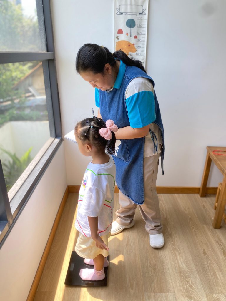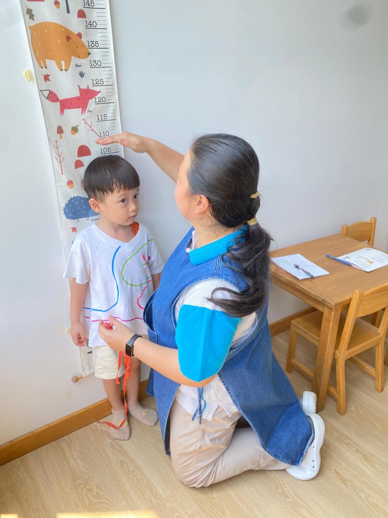 During the quarterly check-ups, the nurse measures students’ height and weight, observes general physical conditions, and records developmental progress according to age-appropriate standards. This process helps identify each child’s growth patterns and ensures that students are developing in a healthy and balanced way. All measurements are carried out gently to make children feel comfortable and at ease.