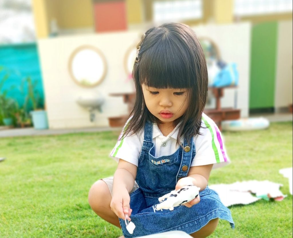 Created on 1 January 2026 Cleaning muddy farm animals using toothbrushes helped children develop fine motor skills, focus, and care for living things. Through this activity, children practiced patience and coordination while learning about cleanliness and responsibility.