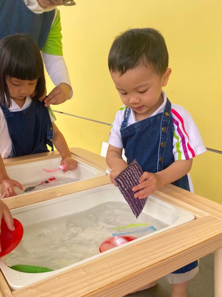 As part of our All About Me theme with the sub-theme My Home, this practical life activity helps children connect their learning to everyday experiences at home. The children are invited to wash dishes using child-friendly bins, along with safe utensils, soap, and sponges. Each child chooses an item to wash, scrubbing and rinsing it independently while the teacher models how to place clean items on a towel and gently wipe them dry. This familiar home-based activity makes learning meaningful and relatable for young children.