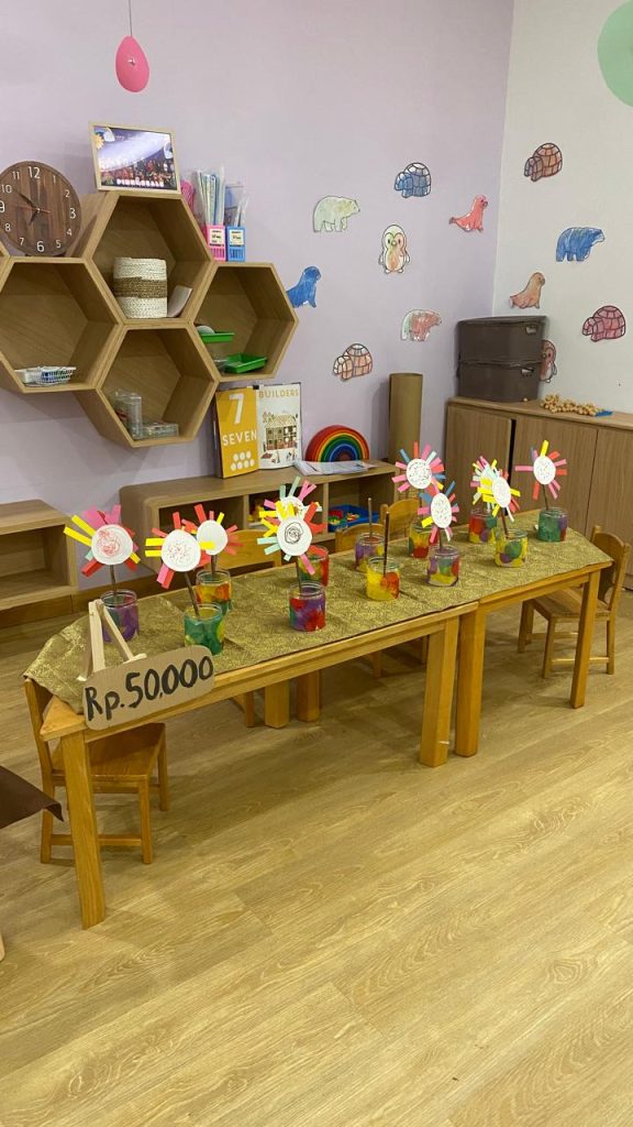 The event featured a vibrant mini market where students sold a variety of Indonesian traditional foods, celebrating local culinary heritage while practicing real-life business skills. In addition, they showcased and sold their own art and craft creations, carefully made during classroom activities. One of the most exciting highlights was the class project auction, where collaborative artworks created by the students were auctioned to parents. The joyful atmosphere, filled with enthusiasm and encouragement, allowed children to see the direct impact of their effort, creativity, and collaboration.