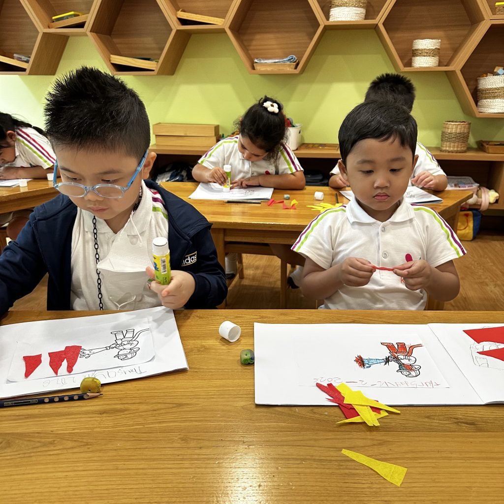 Creative expression was another meaningful part of the learning journey. Children worked on art and craft projects, carefully coloring, cutting, and assembling firefighter-themed artwork. This process nurtured concentration, hand-eye coordination, and pride in their own creations.
