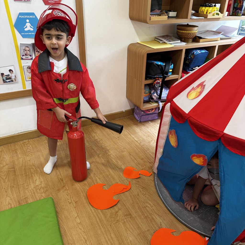 The most exciting moment came during dramatic role play, where children became brave firefighters putting out pretend fires and caring police officers helping others stay safe. Through this imaginative play, they practiced teamwork, empathy, communication, and confidence while experiencing what it feels like to help and protect their community.