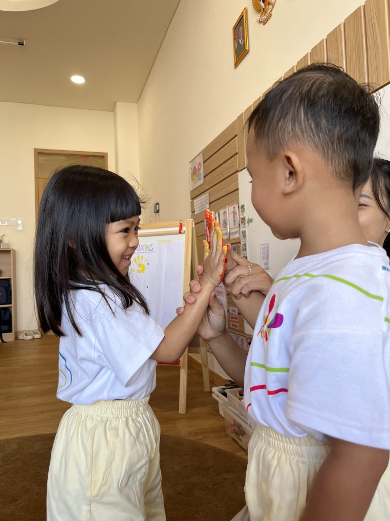 Through this vibrant hands on color mixing activity, our students discover the magic of science and art as they transform primary colors into brand new shades. By using their own hands to press and merge paint, children explore cause and effect while strengthening their fine motor coordination and sensory awareness. It’s a joyful way to build creative confidence and curiosity, turning a simple lesson into an unforgettable “aha!” moment of discovery.