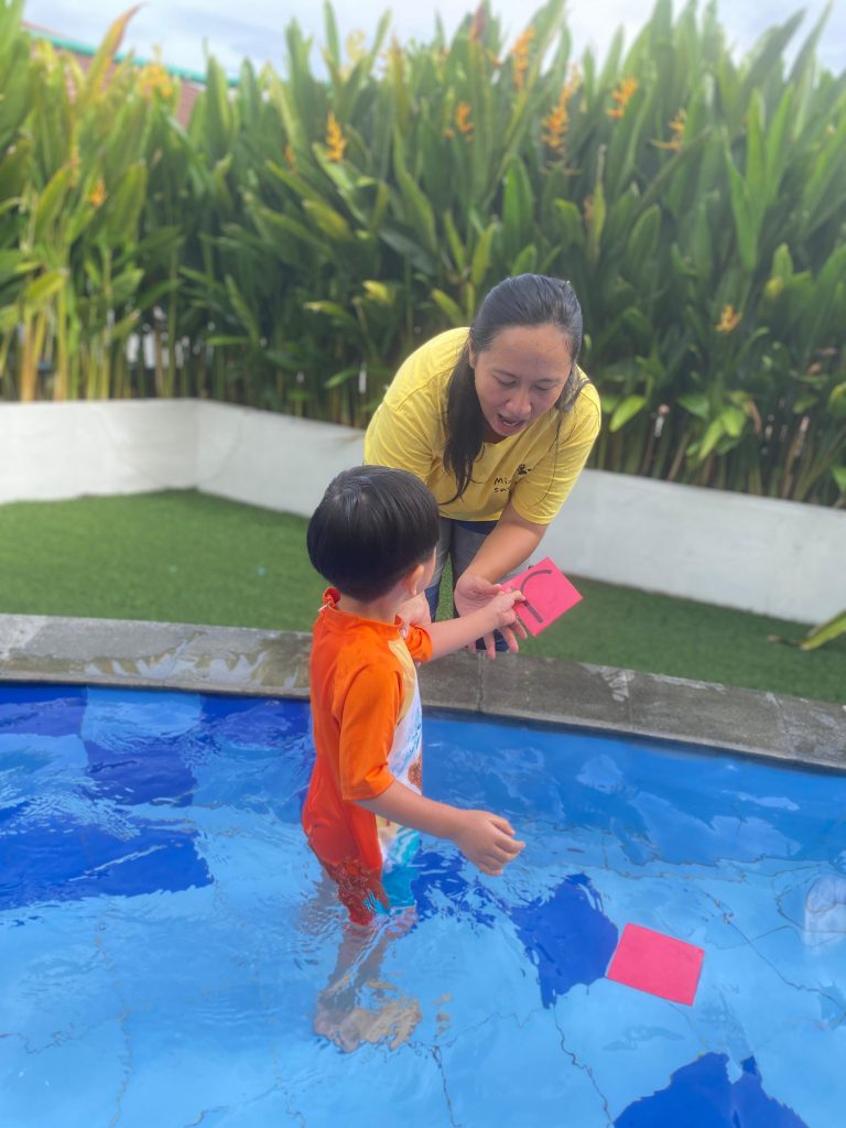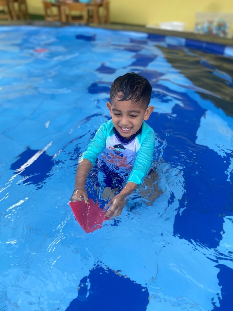 During the session, students practiced simple skills such as kicking, floating, and splashing, all while engaging in playful activities. The class focused on helping children feel relaxed in the water, encouraging them to overcome any initial hesitation. Through songs, games, and gentle guidance, the swimming class became an enjoyable experience that supported both physical development and emotional growth.