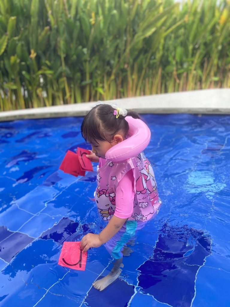 In addition to their water activities, the students also had fun learning the letter “R” through interactive and engaging methods. They explored words related to the letter, practiced its sound, and connected it to familiar objects around them. By combining physical activity with early literacy learning, Kipina Kids Surabaya continues to create meaningful experiences that support children’s overall development in a fun and memorable way.