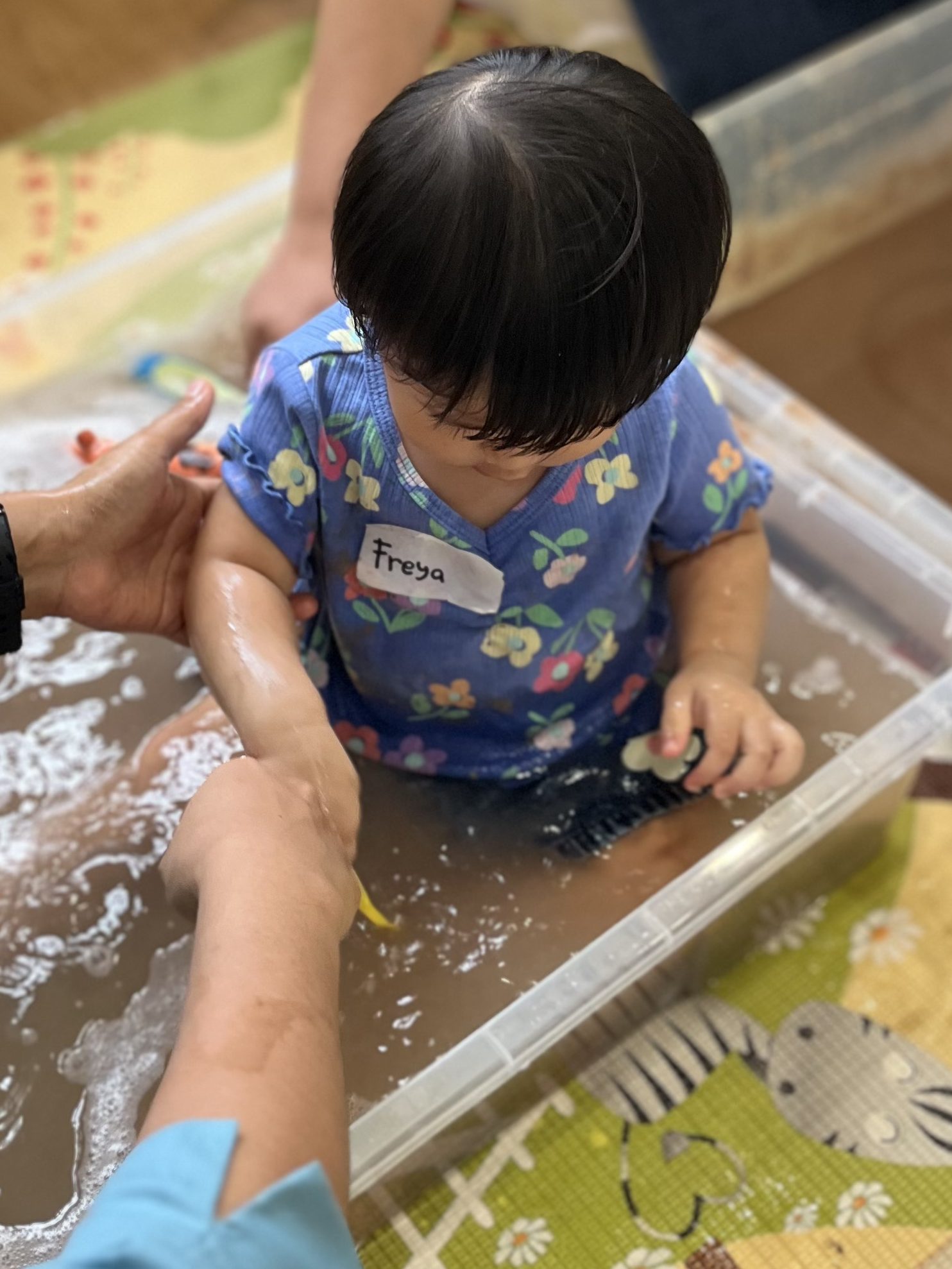 Through engaging and hands-on sensory activities, children are introduced to a world full of textures, colors, and movement. From foam play and water exploration to interactive sensory bins, each activity is thoughtfully designed to stimulate curiosity while supporting early development. As they pour, touch, and explore, children naturally build their motor skills, coordination, and cognitive abilities in a joyful and meaningful way.