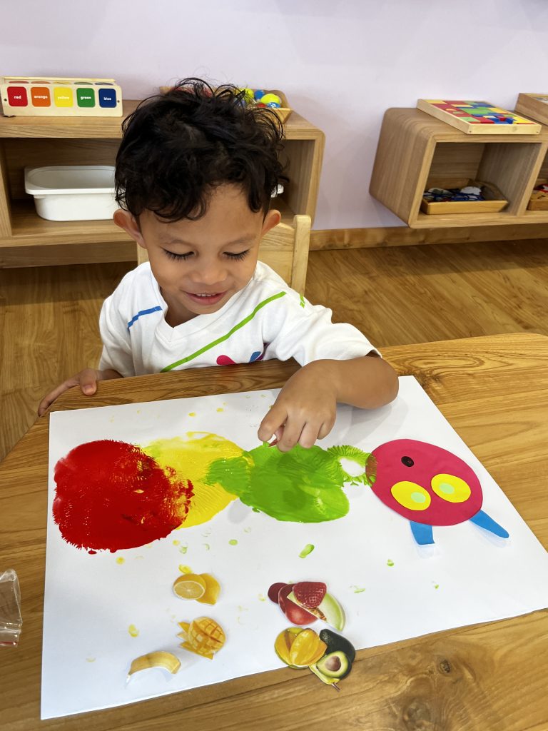 At Kipina Bogor, the Seals (Nursery 2) and Owls (Kindergarten 1) students participated in a fun and creative painting activity after listening to the story of The Very Hungry Caterpillar. Inspired by the story, the children were invited to express their creativity by painting their own caterpillars and butterflies using bright and colorful paints. With guidance from the teachers, they explored different colors and shapes while bringing the story characters to life through their artwork. This enjoyable activity not only strengthened their understanding of the story but also supported the development of their fine motor skills, creativity, and imagination, as well as their ability to express ideas through art.