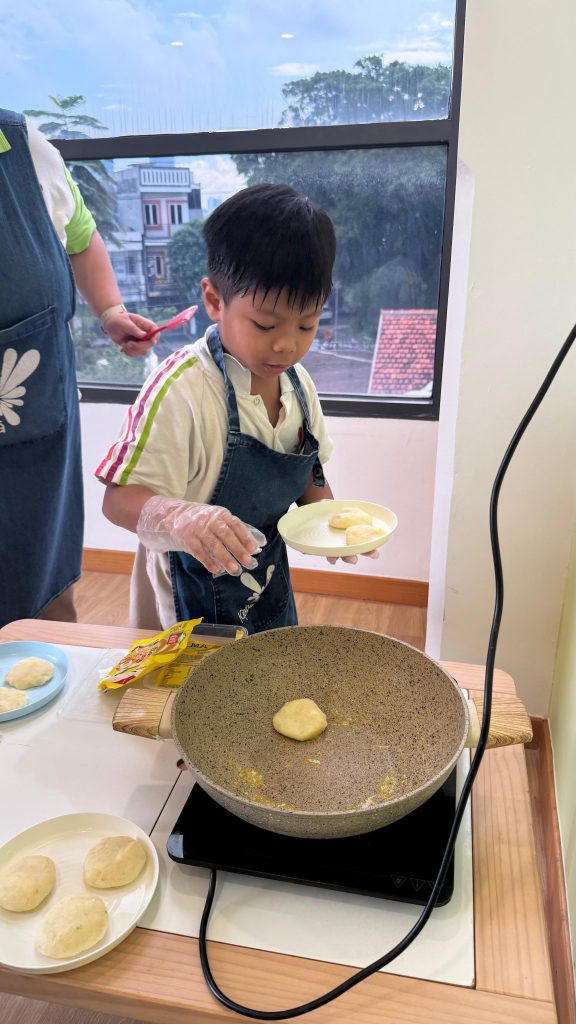 The cooking class kicked off with excitement as children gathered around to learn how to make delicious potato cheese pancakes from scratch. Guided by friendly instructors, the participants were introduced to simple ingredients like potatoes, cheese, flour, and seasoning, making the recipe both approachable and fun for young learners.